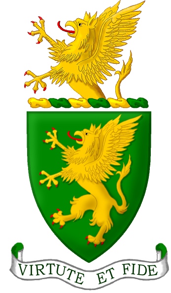 Marc J. Rowe, heraldic artist of Babylon, N.Y.,…today pointed to a peculiar similarity he has discovered in the blazonry of the forebears of the President and of J. P. Morgan. This similarity is the griffin which appears on each, and which Mr. Rowe said was representative of “watchfulness.” The colors of the respective coats of arms were different, however. The Coolidge arms display a gold griffin on a green field, with the insignia “Virtute et Fide.” “These are very simple arms and the inscription, ‘Virtue and Faith,’ are in keeping with the President’s ideas,” said Mr. Rowe. The Coolidge family of centuries ago selected them, he said, and they were brought to the United States about 1600 [sic], or when the first Coolidges settled in Massachusetts. Mr. Rowe said the green was possibly connected in some way with agriculture.